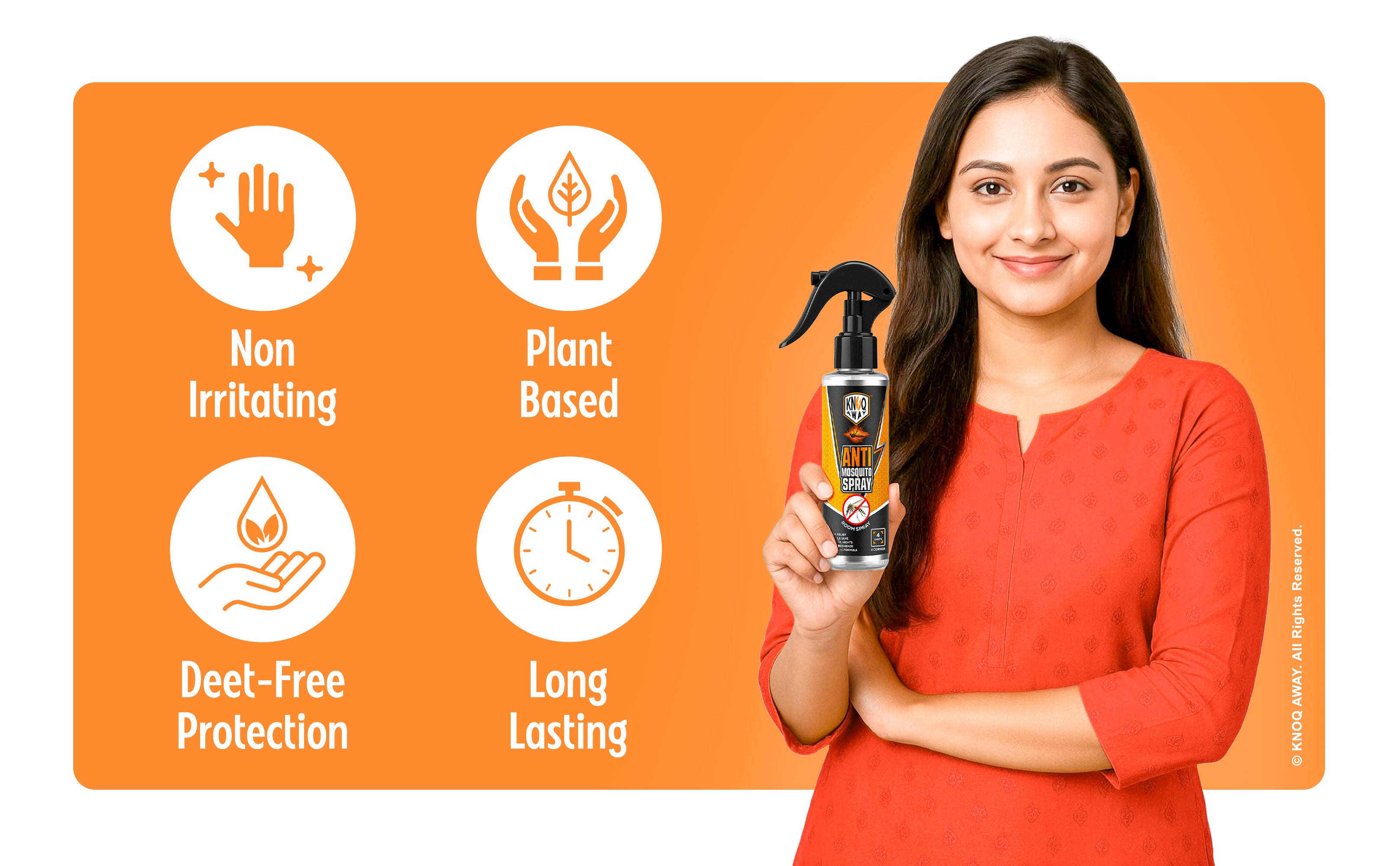 No fumes, no toxins—just plant-powered protection. Knoq Away’s herbal mosquito spray defends your spaces safely, so you can enjoy evenings without the buzz or the bite.