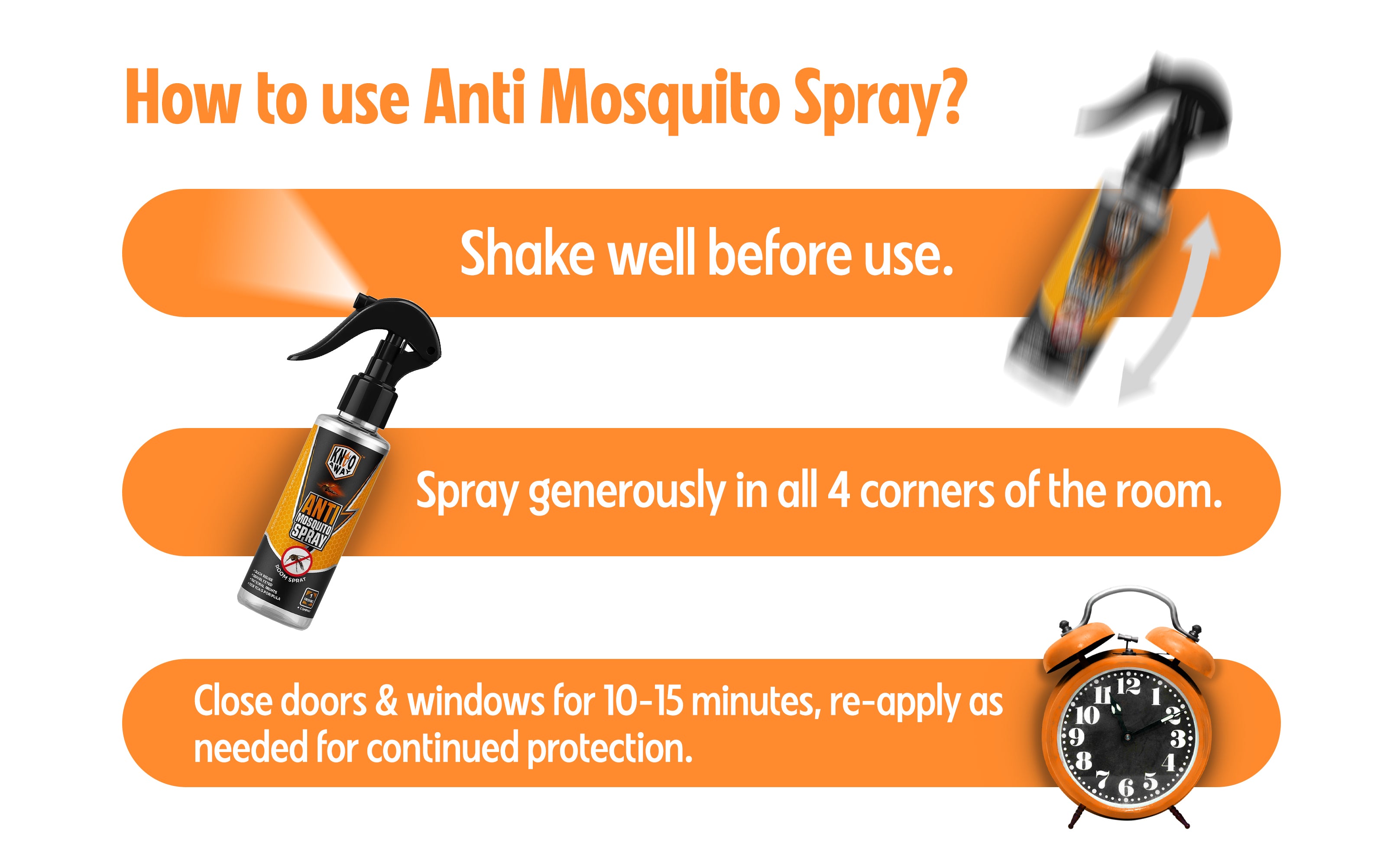 Method of Use : To make 3-4 spray in a room (size 10 X 10 feet) or on lawn. Efficacy : 5- 6 hrs
